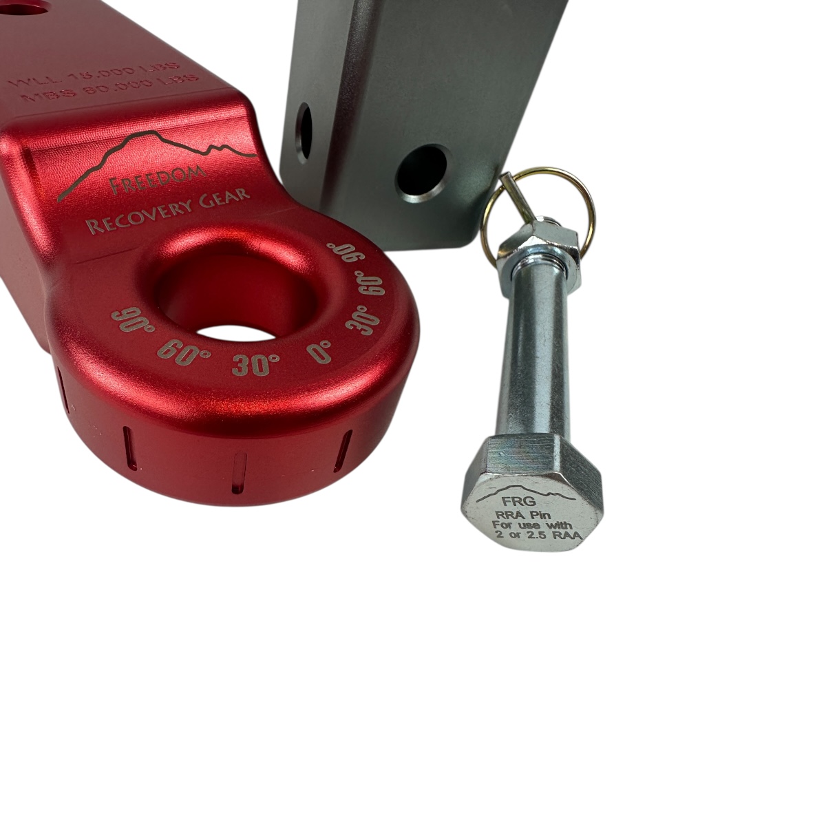Pin is included and Pin is rated for use with FRG RRA 2″ or 2.5″ adapters only.
